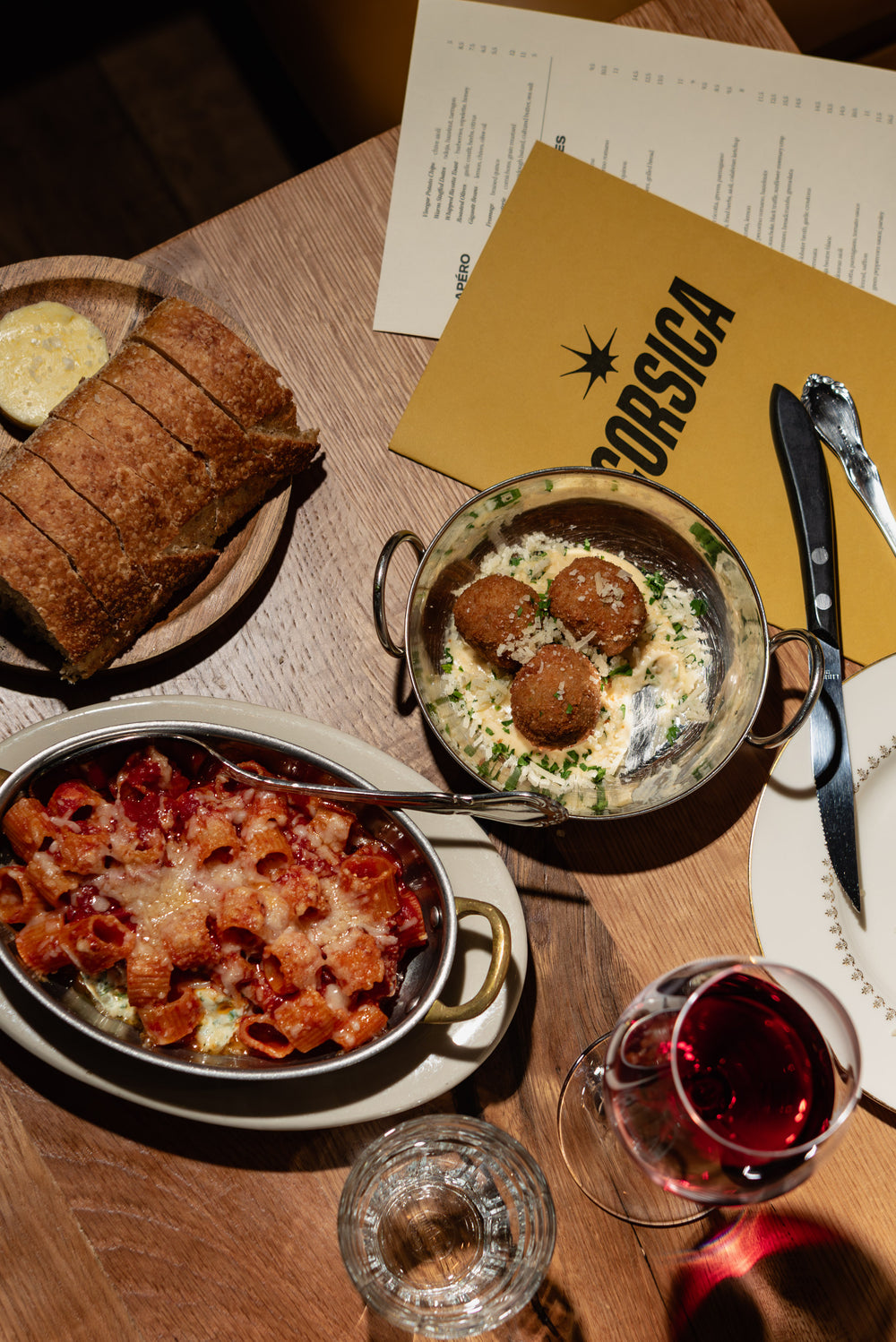 Drawing from the essence of both Ligurian good-for-the-soul food and the Provençal traditions of Southern France - our menu is a celebration of boldness and nostalgia. A touch of acid, sprinkle of crunchy salt with a backbone of umami provides the foundation for every dish’s personality. Led by Chefs Emilio Garcia and Devin Rachles the menu features various small plates of vegetables and meats cooked over an open-flame robata grill, baked pastas, and classic apéro and aperitivi snacks. Emilio and Devin present a menu that is both seasonal and locally reflective. Evocative of the duality of Corsican terroir, both coastal and mountainous. From the braises and stews of the high mountains, to the simply prepared and executed seafood of the coastlines, Corsica’s menu is as diverse and transportive as the landscape itself.